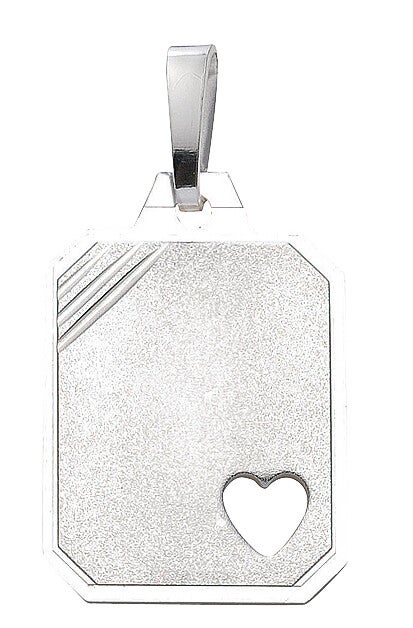 Mit einer Größe von 15,1 mm x 18,5 mm ist die Platte ideal proportioniert für dezente Gravuren. Die Öse mit einem Innendurchmesser von 2,5 mm erlaubt das einfache Anbringen an feinen bis mittleren Ketten oder Armbändern.