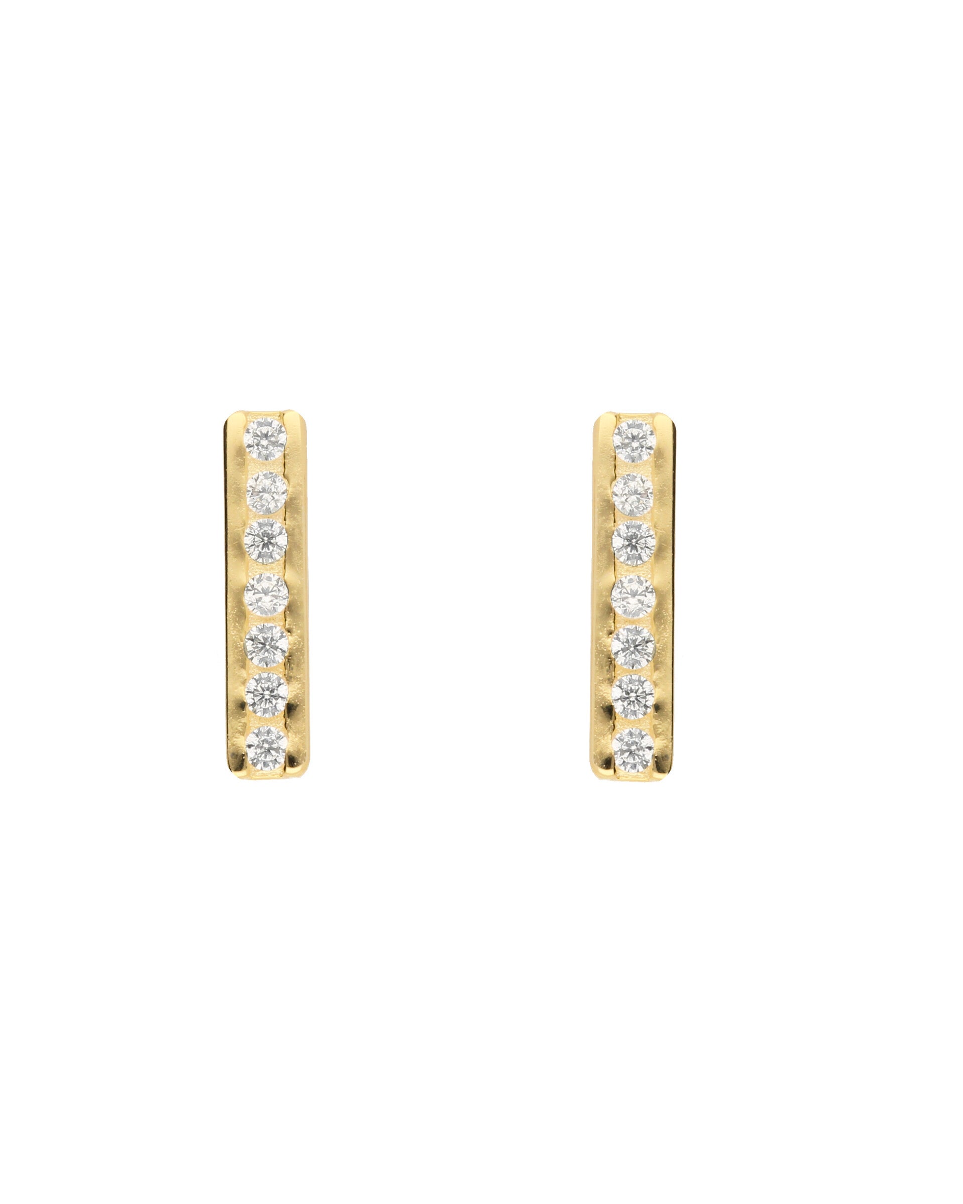 Feine Linien, goldener Glanz – Vergoldete Stäbchen-Ohrstecker mit Zirkonia