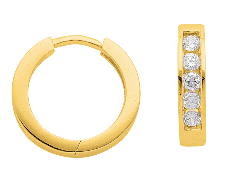 Diese zarten Creolen aus hochwertigem 925er Silber sind doppelt vergoldet und funkeln mit glitzernden Zirkonia-Steinen. Mit einer Breite von 3 mm und einem Durchmesser von 14,1 mm sind sie das perfekte Accessoire für jeden Anlass.