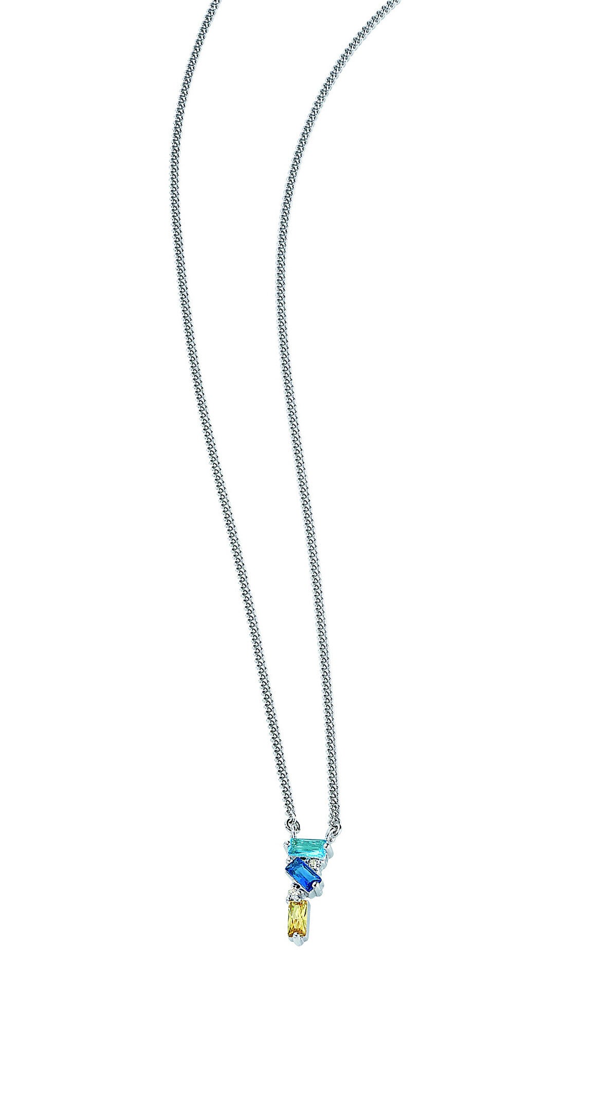 Dieses feine Collier aus rhodiniertem 925er Silber verzaubert mit funkelndem Zirkonia- und Glasstein-Besatz.