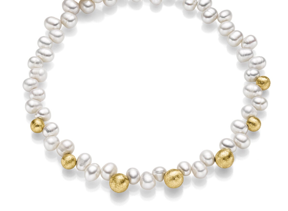 Elegantes vergoldetes Silbercollier mit zarter Süßwasserperle