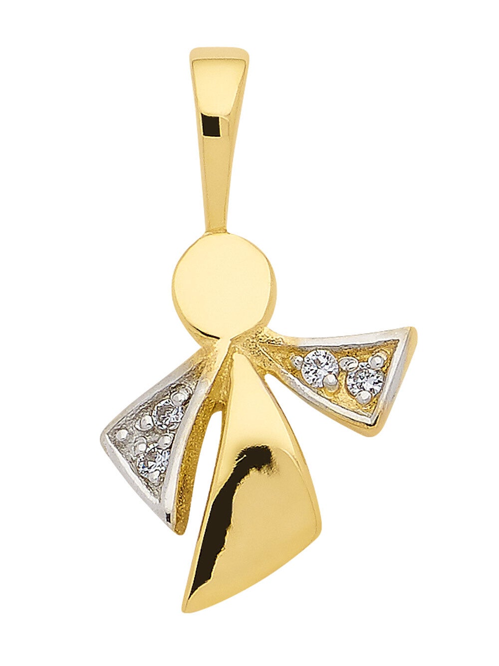 Engel-Anhänger mit Zirkonia – Rhodiniertes Gold