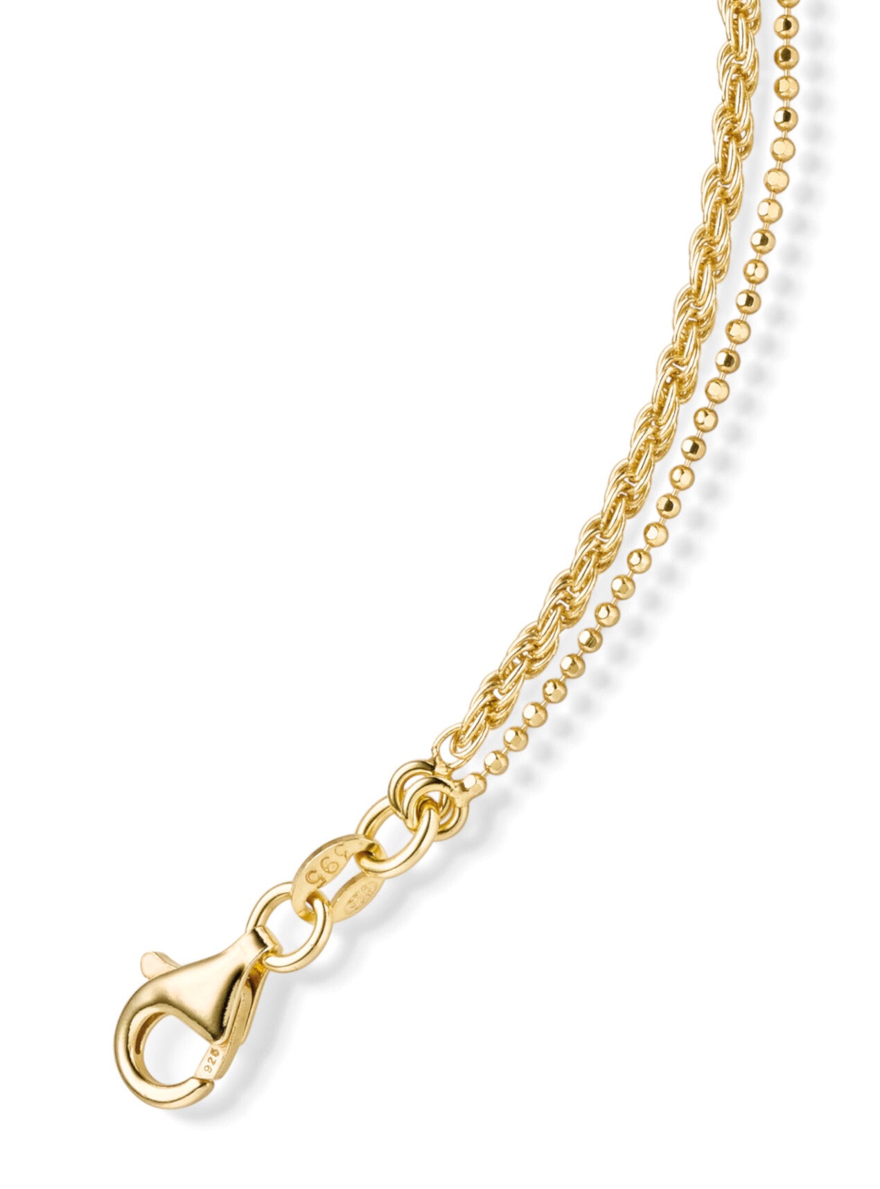 Dieses exklusive 2-reihige Armband aus 925er Sterling Silber, vergoldet besticht durch seine hochwertige Verarbeitung und das elegante Design. Mit einer Kettenstärke von ca. 2 mm (gemessen am Kordelband) wirkt das Schmuckstück robust und zugleich filigran.
